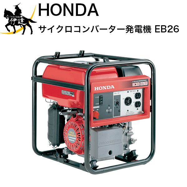 | ※こちらの商品は代理店直送品となります※※ご購入時、発電機にはエンジンオイル、燃料は入っておりません。別途給油、補給してください※【特徴】●使いやすさ・従来のスタンダード発電機を圧倒的に上回る軽量コンパクトボディ・保管時の3段積みを可能にする段積みフックを標準装備●品質、信頼性・信頼のHondaエンジンを搭載。長年の実績に裏付けされた耐久性。・エンジンの焼き付きを防止するオイルアラートを搭載。●環境、燃費性能・世界の環境基準に適合するHonda4ストロークエンジン。【仕様】定格交流出力50/60Hz:100V-2.6kVA騒音レベル[dB(A)/Lwa]:97[3/4負荷]、97[定格負荷]タンク容量:9.2L全長:445mm全幅:402mm全高:496mm連続運転時間:5.8h質量:31kg使用燃料:自動車用無鉛ガソリン【注意】 屋内では絶対に使用しないでください。 屋外でも換気の悪い場所では絶対に使用しないでください。 発電機の使用中に出る排気ガスには有害な一酸化炭素が多く含まれており、一酸化炭素中毒を引き起こす恐れがあるため、大変危険です。