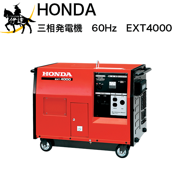 | HONDA 三相発電機 4.0kVA(三相交流200V) 60HZ EXT4000K2-N1 ●4ストロークエンジン採用で低振動、低騒音、そして軽量・コンパクトです。●負荷の大きい水中ポンプ、コンプレッサーなど、三相誘導モーターを使用する作業機に最適です。 ●ガソリンは非常に引火しやすく、また気化したガソリンは爆発して死傷事故を引き起こすおそれがあります。●燃料を補給するときは、必ずエンジンを停止し換気の良い場所で行ってください。 HONDA 三相発電機 4.0kVA(三相交流200V) 60HZ EXT4000K2-N1 の特徴●定格交流出力:単相:0.5kVA/三相:4.0kVA●燃料タンク容量(L):13.5●全長(mm): ●自動電圧制御装置 HONDA 三相発電機 4.0kVA(三相交流200V) 60HZ EXT4000K2-N1 の仕様 重量125 原産国日本